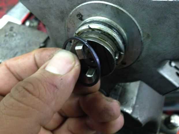 Preste atención a la arandela entre el caso de acoplamiento y distribuidor de empuje, tenga cuidado de no perderlo.