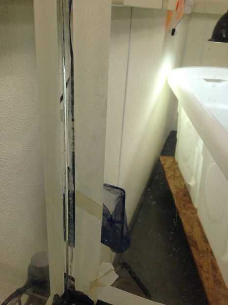 utilicé cinta de enmascarar, pero se puede utilizar como cinta de pintor. Date un poco de espacio a ambos lados de las articulaciones para que el sellador no es sólo en las esquinas del tanque.