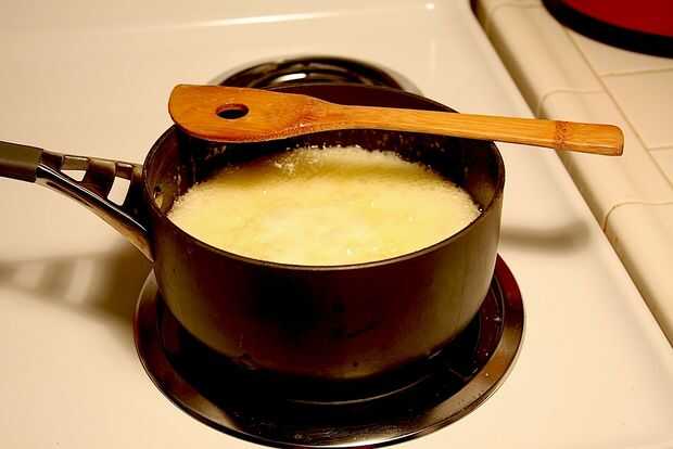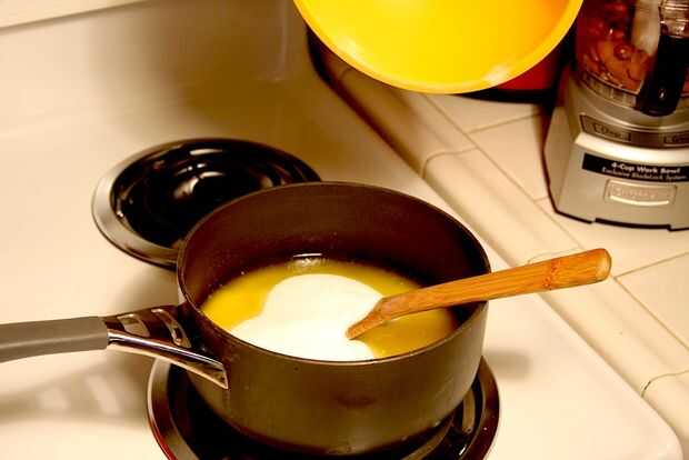 Mientras esto se cocina, pasar al paso 4 para preparar el recipiente para que esté listo cuando se prepara el caramelo fundido caliente.