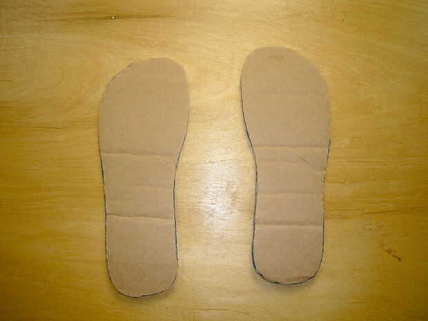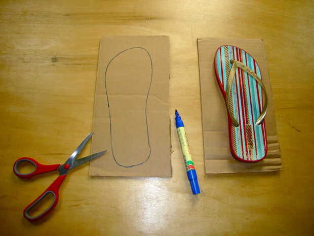 Usar tus ojotas para trazar una plantilla en dos piezas de cartón.