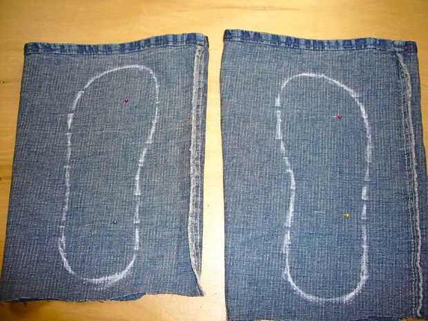 Cortar por el contorno, dejando un borde de media pulgada. Esto si dejo una pieza superior e inferior de la tela para cada pie.