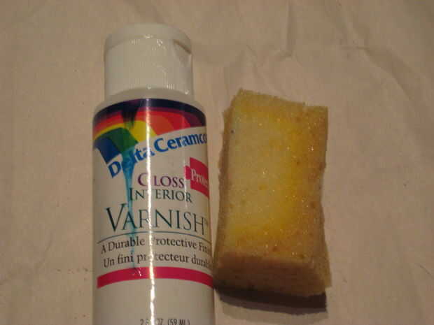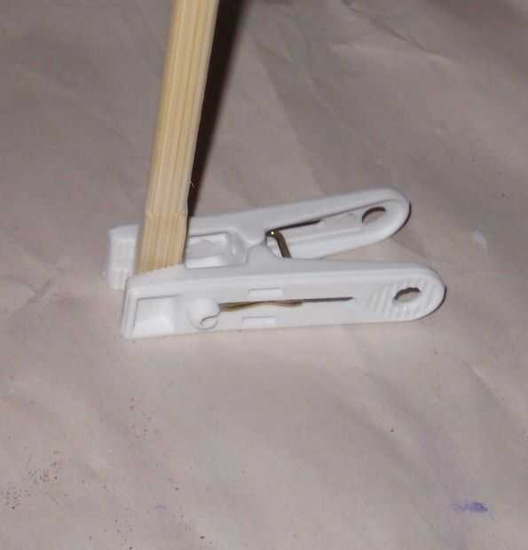Aplica unas 3 capas con un pedazo de esponja, y lijar ligeramente y luego aplica otra capa. Utilizar unas pinzas o clips similares para sujetar los palillos vertical mientras se secan.