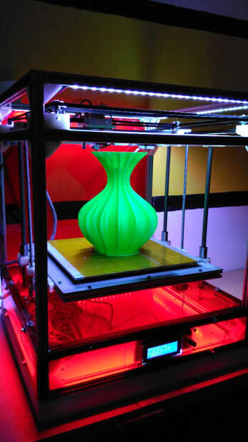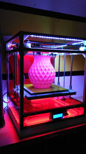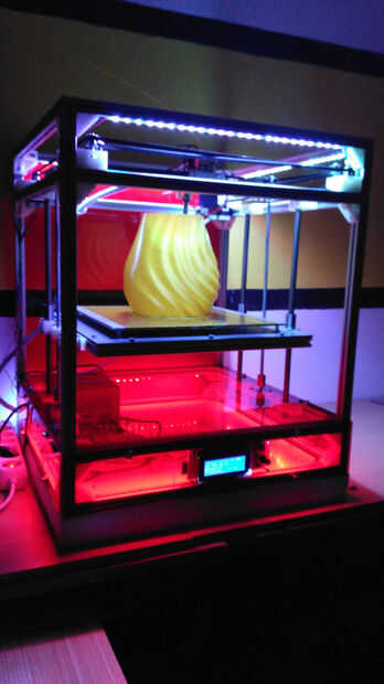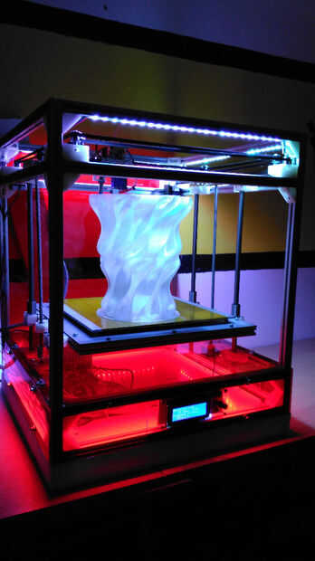 En Resumen, Vulcanus Max es una escala versión de Vulcanus V1 con mejoras estructurales, todos impulsión directa del metal, cama de auto nivelación, rodamientos de LM10UU y LMK12L Z los rodamientos y colorido lava como paneles de acrílico.