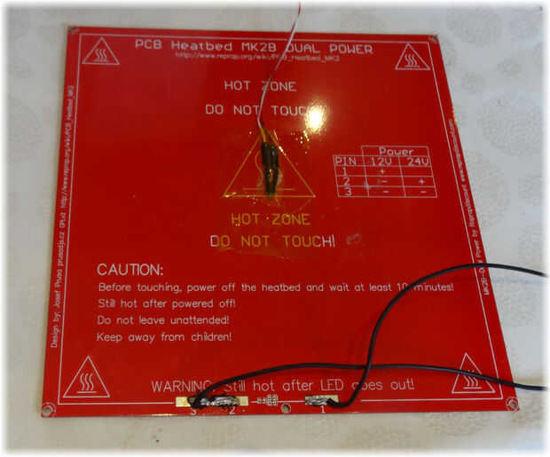 Para el Heatbed: pegar las termocuplas con alguna cinta de Kapton en el Heatbed