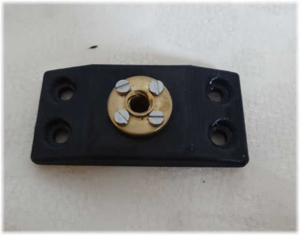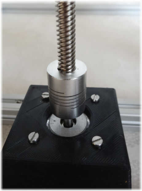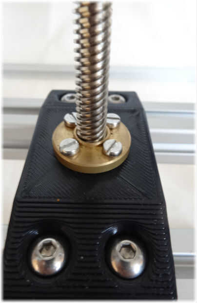 -En primero tienes que poner la tuerca de plomo en la "tuerca de eje de Z" impreso piezas. Fijan la tuerca de plomo con cuatro srcrews de M4x16mm. Después de usted inserte el tornillo en la tuerca. Después de usted al husillo del motor usando el acoplador de eje 5x8mm.