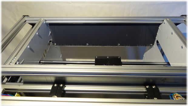 Para este paso necesita todas las placas de aluminio. Para el dimensiions por favor mirar mi archivo de 360 de fusión, donde se pueden ver las dimensiones exactas. Conecte todas las placas con tornillos M4x6mm a las extrusiones de aluminio.