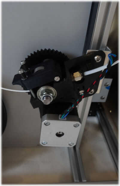 I ' AM usando un estirador a bowden, debido a dos razones. Primero: un extrusor a tiene torge mucho más que una transmisión directa. Segundo: Quiero reducir el peso del carro X, por lo que puedo imprimir más rápido con menos "líneas fantasma".