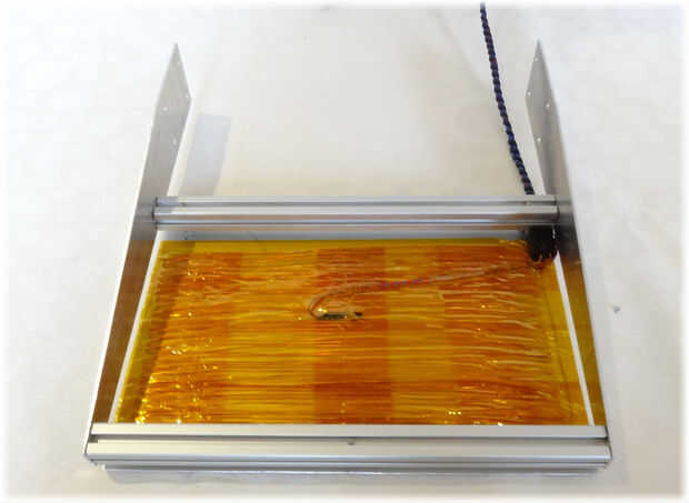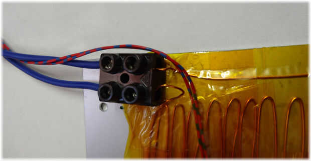 En primera tienes que medir su diámetro de su alambre en mi caso 0,7 mm. Después de eso, deberías metioned sobre cuánto poder debe generar su cama caliente. Hice una cama caliente con 240W, para que eso necesito 13m del alambre. Entonces, hizo una cama de clavos, para el cable. Después de eso, fijan los cables con cinta de kapton. Para fijar los cables a la placa de aluminio, se pega una capa de kapton cinta para la placa de aluminio y, a continuación, usted puede fijar los cables a la placa de aluminio usando otra capa de kapton. No olvide colocar las termocuplas en su cama. Finalmente, tienes que conectar los cables con alambres más gruesos para la electrónica. Para este paso I'am usando un conector de cable de pertinax.