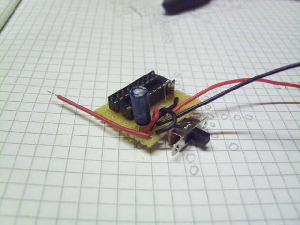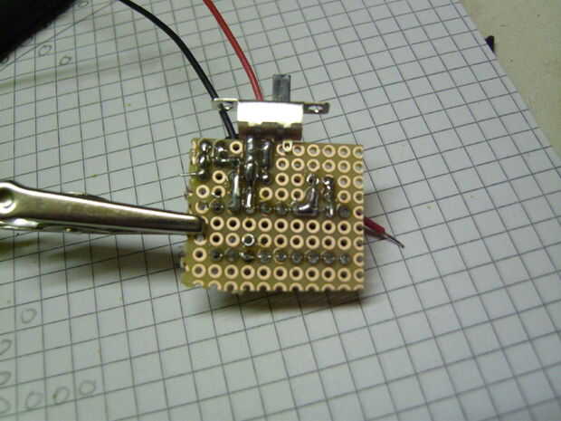 Soldar el circuito en un pedazo de protoboard (su como la miniboard de Radioshack), pero puede hacer su propia tabla o utilice otros protoboards. La forma más fácil es usar un protoboard estilo protoboard como