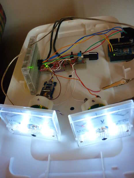 La programación es relativamente simple, pero la parte más difícil está consiguiendo sus medidores para mostrar la hora con precisión. Por ejemplo, cuando es 6:30 ambos metros deben estar apuntando hacia arriba. Porque los metros son ligeramente diferentes, la necesidad de los valores PWM ajustar basado en su diseño. No dude en utilizar mi código, pero tendrá que cambiar algunos valores ya está preparado para funcionar específicamente con mi metros