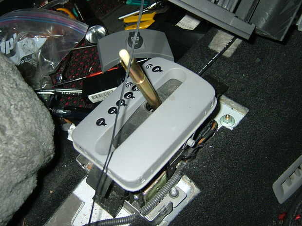 Go en el coche, en la parte posterior de la lata de polvo de transmisión automática es una cubierta de plástico, retire la cubierta