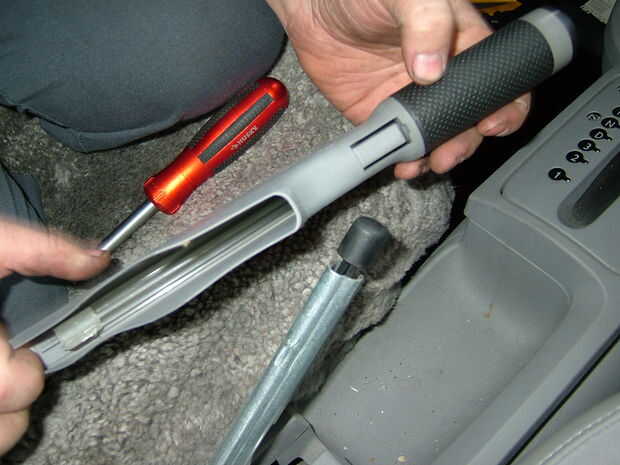 Retire la palanca colocando el coche en punto muerto, y luego tire el pulgar la palanca hacia fuera, luego tire la cosa entera apagado duro.