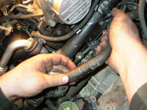 Desconecte las mangueras del enfriador de transmisión y uso de un acoplador de manguera de refrigeración de 5/8".