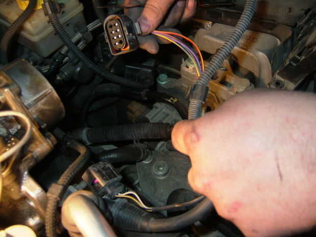 Cortar el transmisión rango conector de mazo de cables es el conector en la parte posterior de la transmisión cerca de la bomba ABS.