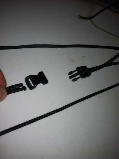 Esto es una alternativa fresca a las hebillas plásticas voluminosas sobre todo pulseras paracord que he visto, tanto en línea como en persona. Utiliza cortadores de alambre para quitar hebillas existentes desde mi pulsera (cuidado de no distorsionar