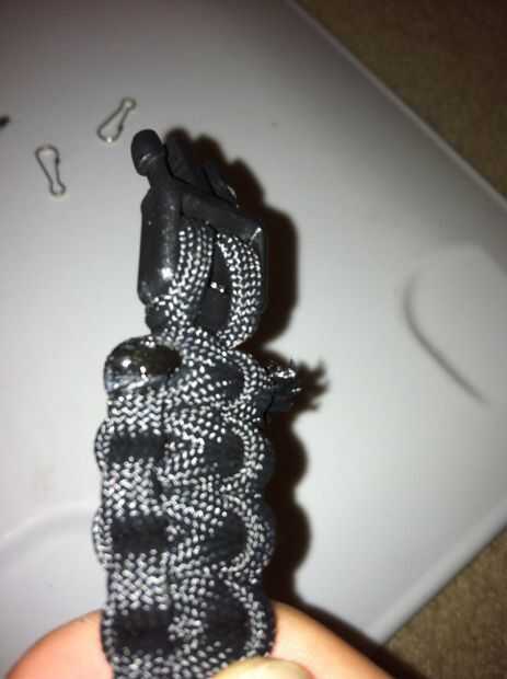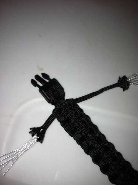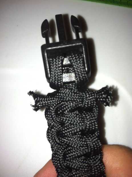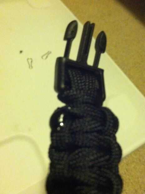 Esto es una alternativa fresca a las hebillas plásticas voluminosas sobre todo pulseras paracord que he visto, tanto en línea como en persona. Utiliza cortadores de alambre para quitar hebillas existentes desde mi pulsera (cuidado de no distorsionar
