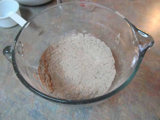 5. mezclar el harina, el cacao y el bicarbonato de sodio.