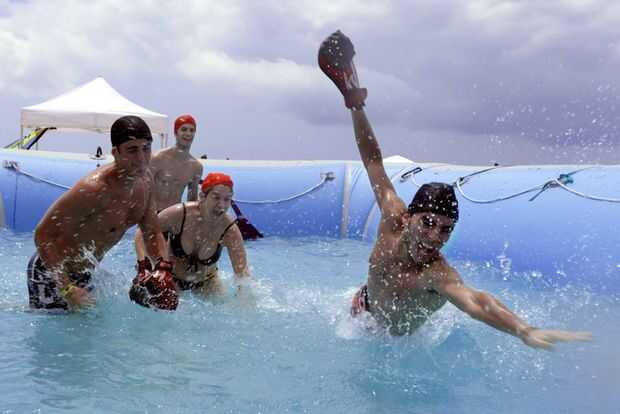 Es muy simple. Usted puede lanzar a sus compañeros de equipo. Para conseguir le debe rebotar la pelota en la red pasado el portero. Si choca con nada, pero la piscina, la bola está fuera de límites y el otro equipo recibe la pelota. Se hacen equipos de 2 o más personas. Uno de ellos debe jugar de portero.