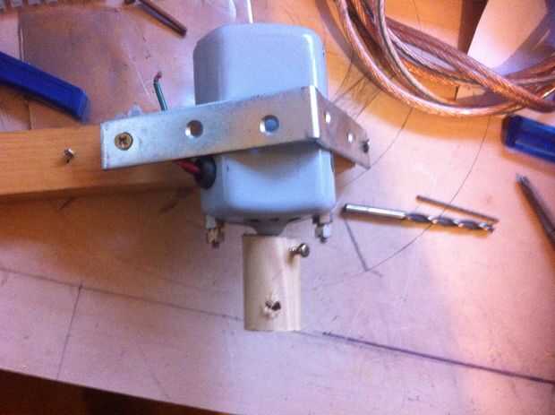 utilizando el soporte asegura el motor a la broca de desecho de la madera.