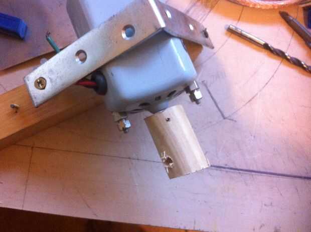 empuja el desecho de la escoba en el eje del motor y luego atornillar un tornillo en el lado para sostenerla en su lugar, hay una inmersión práctica en el eje del motor sólo para poner un tornillo en a para sostener la polea para la correa de transmisión de la máquina de coser.