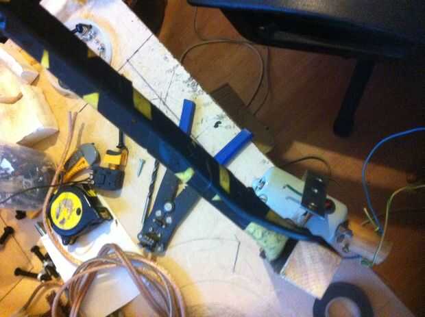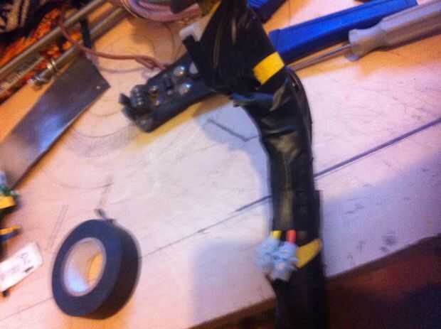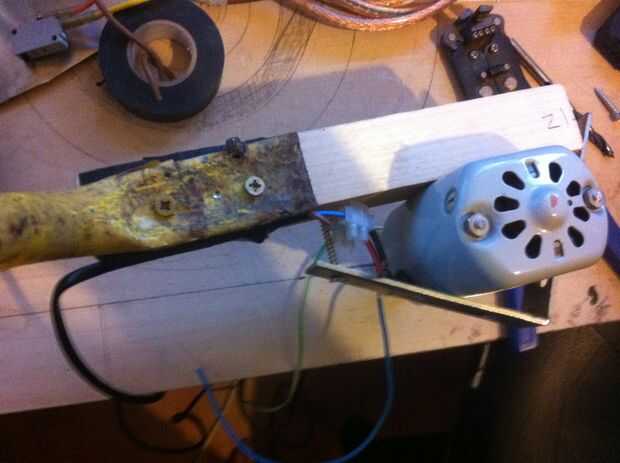 volviendo mi atención hacia la cabeza, he conectado un cable a los conectores de motor y cinta para el desecho de madera, luego puedo tornillo de la manija para el desecho de madera.