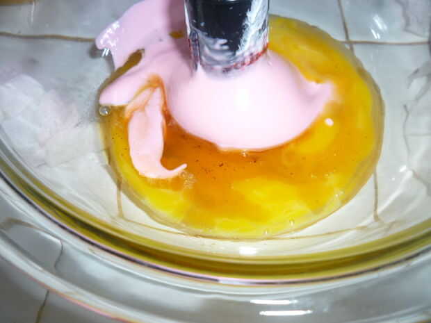Bate en vainilla, las yemas, reemplazo de crema y aceite de coco de huevo juntos