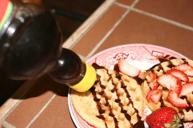 Luego, conseguí mi jarabe de arce y añade el jarabe de arce entre el jarabe de chocolate. Esto fue hecha para guardar los jarabes incluso sobre la galleta y hacer el gusto mucho mejor!