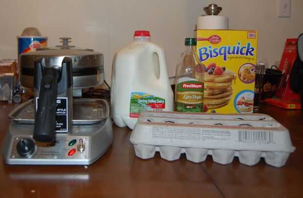 Lo mejor de despertar es comer estos waffles y caer en un coma alimentos para el resto del día!Paso 1: Lo que se necesita Nota: Hace 3 barquillos grandes (usted necesitará al menos dos personas para ayudarle a comer estos)Una gofrera o hierro de barq