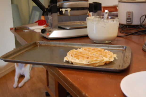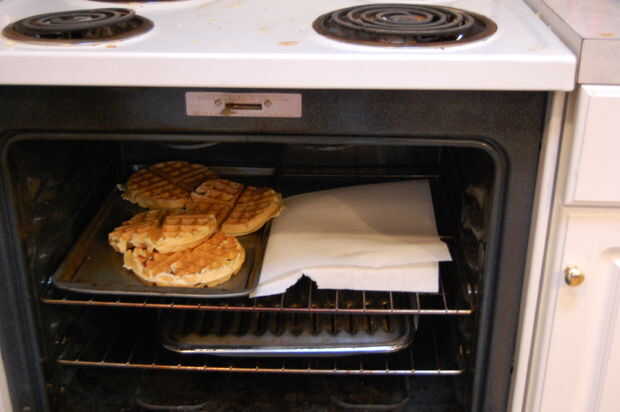 Si usted está haciendo waffles múltiples, se pueden mantener calientes en el horno. Ponerlos en una placa para horno y ponerlas en el horno a 170 hasta que estén hechas.