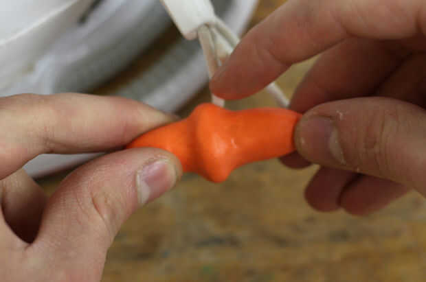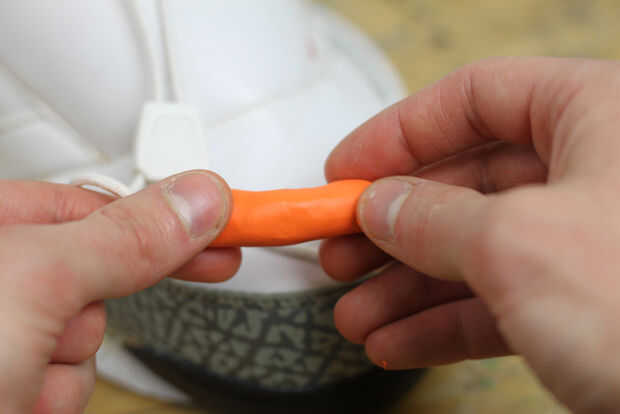 Envuelva el sugru plana alrededor de la fijación del encaje y presione en hasta que la cubierta uniforme.
