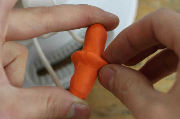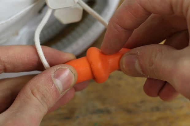 Con los dedos suavemente frote y suavizar el sugru hasta que ha formado una salchicha gruesa alrededor del cordón.