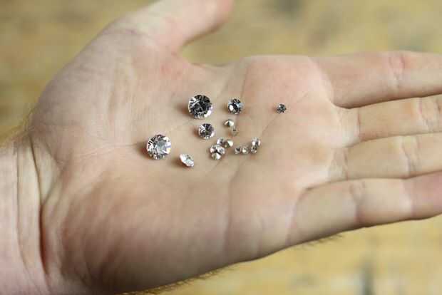 Compramos online de SWAROVSKI cristalizado. Usted puede comprar cargas de diferentes cristales en diferentes tamaños y colores y no son tan costosos como usted podría esperar. Este es el tipo que usa que están disponibles en 3 tamaños (y un montón de colores)