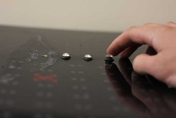 Empezar por crear un pequeño cono de sugru y presiona el punto en la superficie de la Junta hasta que se ha convertido en una pequeña gota. Esta gota debe ser lo suficientemente grande como para tener la base opaca de cristal sumergido en él. Haciendo el sugru forma un cono asegurar que exista un vínculo firme como usted lo empuja contra la superficie de la Junta.