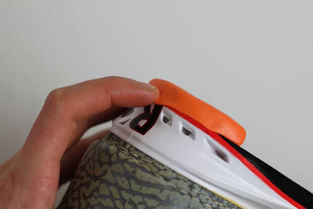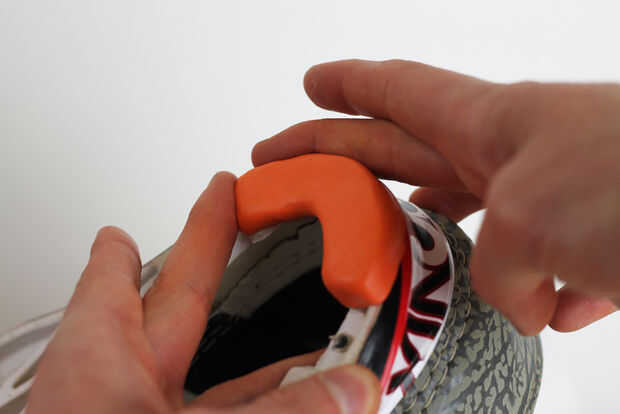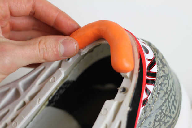 Presionamos la salchicha sugru en el talón, asegurándose de que hubo una buena adherencia fuerte.