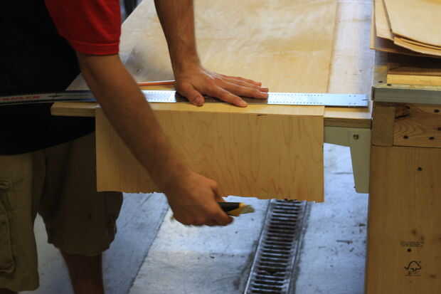 Una vez sabes la dimensión final de el molde, cortar las chapas para que coincida con la forma. Esto ayudará a prevenir exceso chapa tecleos inexacto a su molde. Medida corte el largo y ancho de la chapa si es necesario usar una navaja filosa y una regla de borde recto. Si corte lo suficientemente profundo en la chapa, el debe poder desprenderse fácilmente del exceso de material a lo largo de la línea de corte.