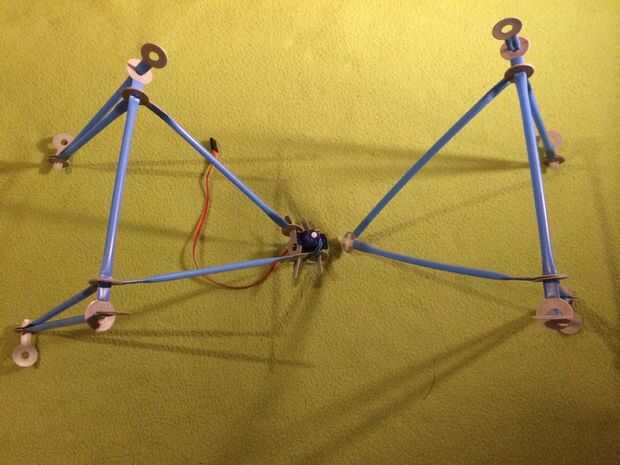 Hacerlo como un eje diagonal tendrá una rotación inversa fresca, muy útil para caminar robots en general.