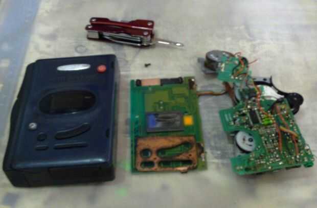 Aflojar cada tornillo que se puede encontrar. Luego cuidadosamente Saque todo. Asegúrese de no agrietar o romper la cubierta. Mantenga los botones cuando necesitamos pegarlos atrás. El IPC es lo suficientemente pequeño como para caber la cubierta de cinta así que todo lo que realmente necesitaba hacer era taladro o en mi caso hacer 2 agujeros en la parte frontal del reproductor. Se trata del montaje para el IPC. Cubrí los tornillos con los botones de un mando a distancia defectuoso, pero puede dejarlo como es, ya que apenas es perceptible. (Antiguo tech tienen toneladas de tornillos en ellos)