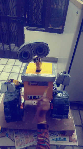 este año decidió vestirse de Wall E y Eva, después de una de nuestras películas animadas favoritas, Wall e.   Hicimos nuestros trajes de materiales reciclados como cajas de cartón, periódico, en blanco CDs, 2 azul pilas luces led, placas de plástico