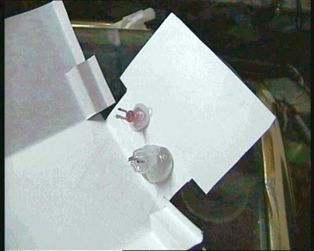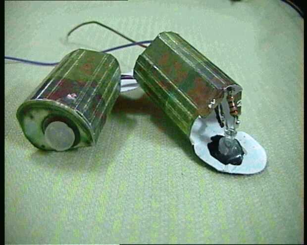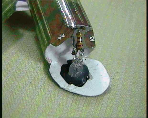 Antes de empezar a pegamento las piezas con silicona o gluegun ponen el LED y la resistencia en lugares marcados como en la fotografía