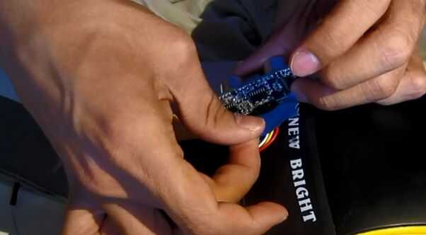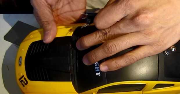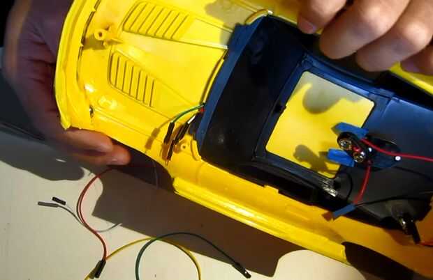Ahora seguir adelante y alimente el cable a través del área de la capota del coche y la cinta de su sensor.