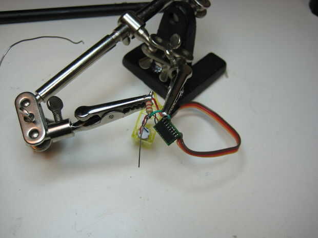 2. suelde una resistencia de 2,2 K entre el cable verde y el amarillo.