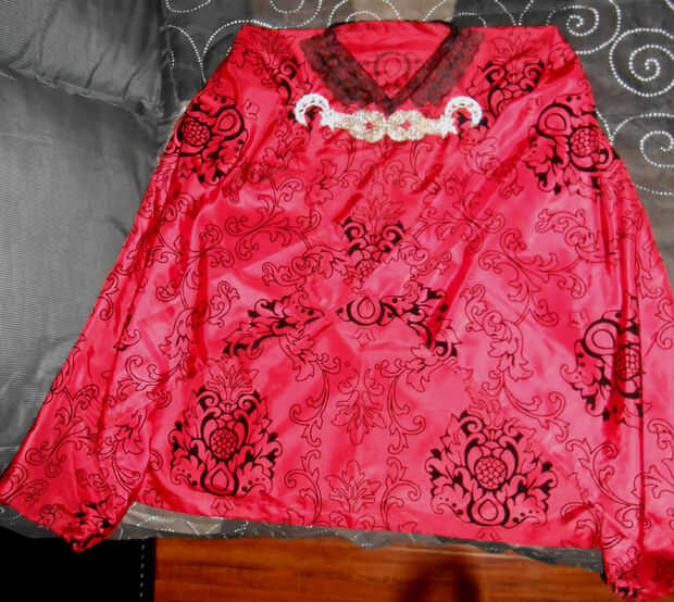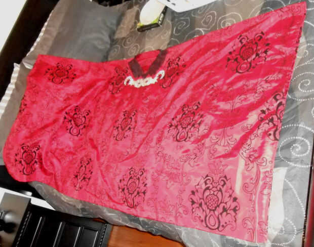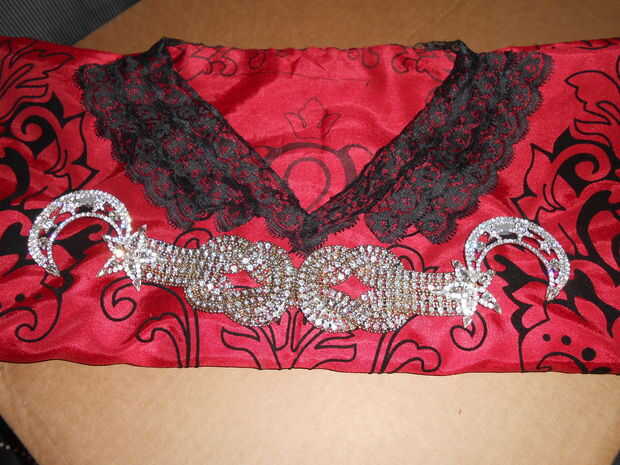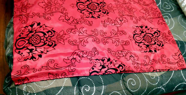 Una pieza cuadrada de tela, debe medir la medida (punta) del usuario, por ejemplo he utilizado a una tela 72 x 72 pulgadas ya que mi medida es de 72 pulgadas. Utilizar a una tela que es llamativo, opulento y sobre la parte superior. Brocado, lame, Damasco, terciopelo, satén, etc. He usado una cortina de ducha para el mio, es un acabado Satén con patrón Damasco acudieron en terciopelo negro)
