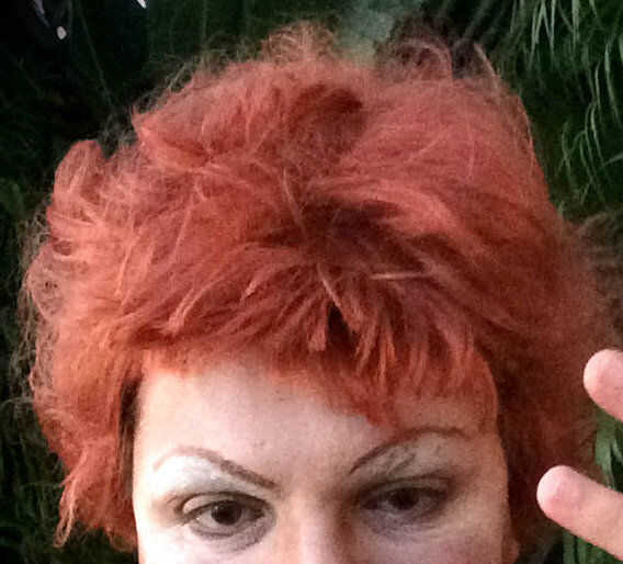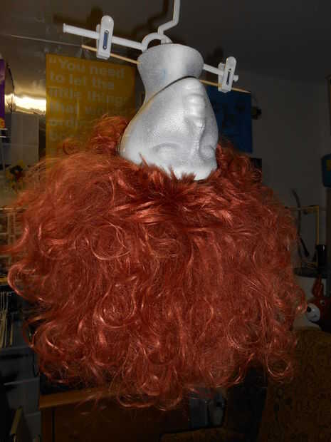 Tengo pelo corto, así que opté por embromar hacia fuera una peluca rizada corta y estilo en su lugar usando bobbypins. Te recomiendo un color cobrizo o naranja. Si tienes pelo thar que puede estilizar, puede hacerlo y uso colores spray de cabello para lograr el look. Go para el cabello grandes de los 80.