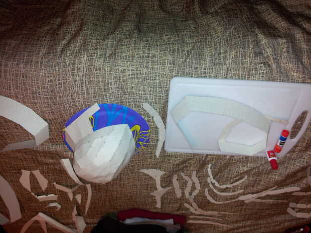 Primer paso fue decidir lo que quería ser para Halloween. Tenga en cuenta que este proyecto llevará algunos meses para completar. Después de que decidí hacer mi propio traje de la trituradora. Necesitaba crear la impresión azul de mi traje. Me encontré con un programa llamado Pepakura que me permitió imprimir el modelo para mi traje. Una vez que todas las piezas fueron impresas, empecé a cortar y pegar utilizando una pistola de pegamento caliente.