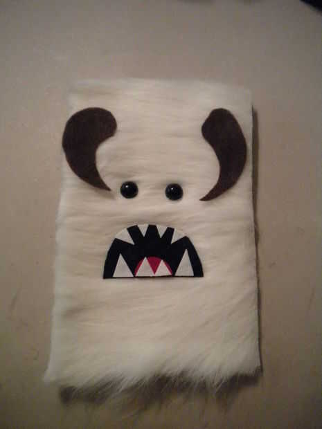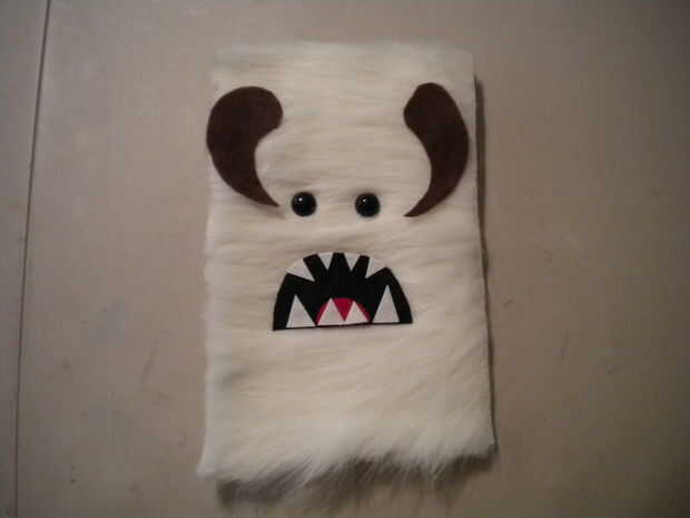 Comencé por trazar la piel sobre la bolsa y luego cortarlo para inserir la parte delantera de la bolsa. También cortar las cuerdas de la bolsa. A continuación, utilizar la dremel para quitar los respaldos fuera de los ojos. A continuación, utilizando el fieltro, recortar las formas y las piezas de la boca y los cuernos. Entonces había montado éstos sobre la piel y me caliente pegado a ellos para hacer la cara. Una vez que terminó, caliente pegué esta al frente de la bolsa. La parte posterior tiene una cremallera y el Sony Reader cabrán dentro.