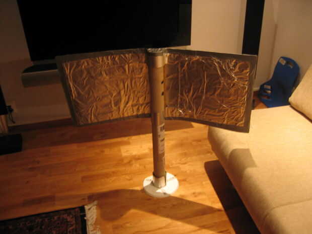 instrucciones para su propio refuerzo de recepción antena WIFI, el diseño es una antena parabólica ( http://en.wikipedia.org/wiki/Parabolic_trough ).Descargar el PDF y recortar la plantilla, un poco de algodón, papel de aluminio y montaje de nivel 'p