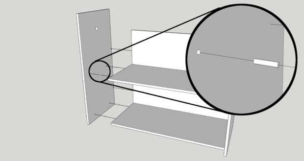 Para unir las partes del cajón he utilizado pegamento de madera y las clavijas de madera. Eran 6 mm de diámetro y 30 mm. Hice un cajón para colgador de ropa. Desde abajo atornillado wheeles, que donde fijado en la dirección así el cajón sólo puede moverse longitudinalmente.