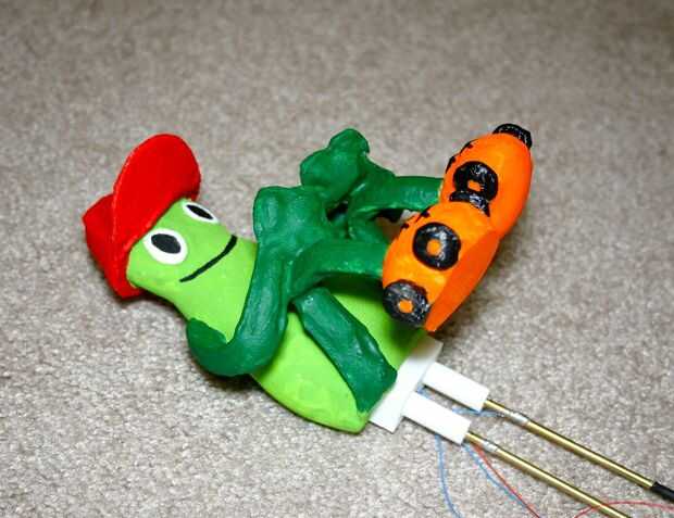 Ya se sueldan dos cables a las patas. Debe haber tres cables adicionales, dos para la alimentación de seis voltios y uno para operar la bomba de agua. Inserte la electrónica en el cuerpo de Freddy.