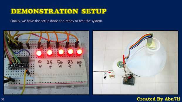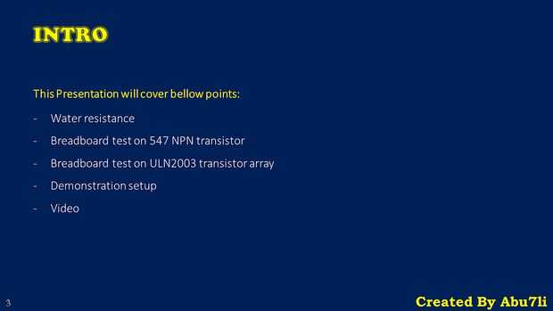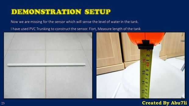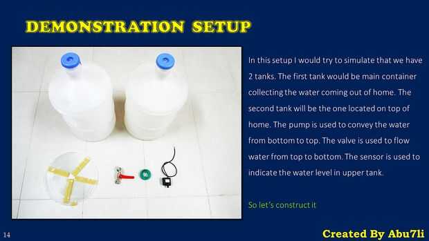 En esta presentación trato de mostrarle cómo puede controlar el nivel de agua dentro de su tanque. esta parte es para demostración, le subo la otra parte que es la aplicación de la idea en la vida real.