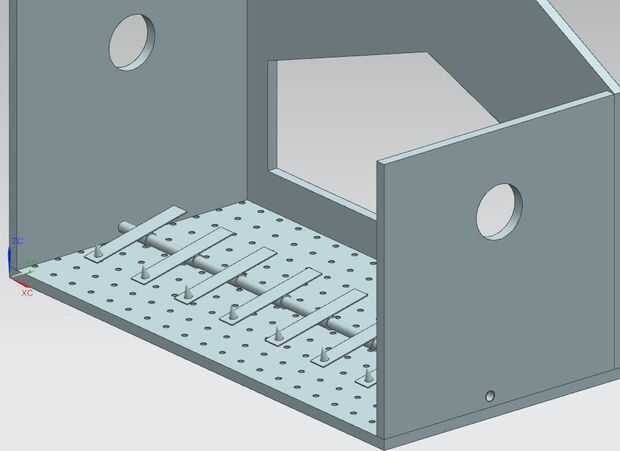 Debajo de los listones que atribuimos un túbulo (robar) donde pasará el eje de hoolow por. La en listones que los túbulos Unido entre sí por soldadura.